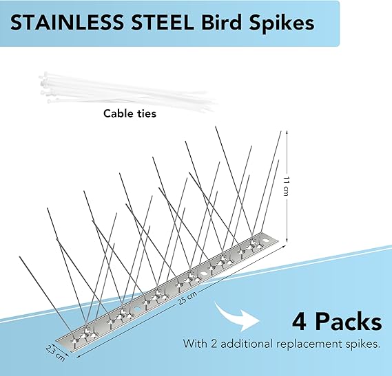 - DURABLE STAINLESS STEEL CONSTRUCTION! Crafted from high-quality stainless steel, AOKKR bird spikes are designed to withstand the UK’s variable weather conditions, including rain, snow, and UV exposure, ensuring more than 10 years of performance
