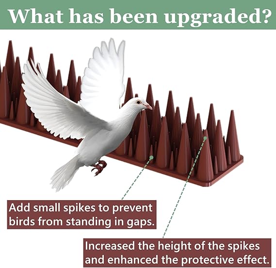 - 【Apluskis Upgraded Bird Spikes】Patent Design-Compared with other pigeon spikes, our bird deterrent spikes add a lot of small spikes beside the regular long spikes, which can make birds raccoon cats fox and squirrel unable to stand in the gaps of the bird spikes effectively.
