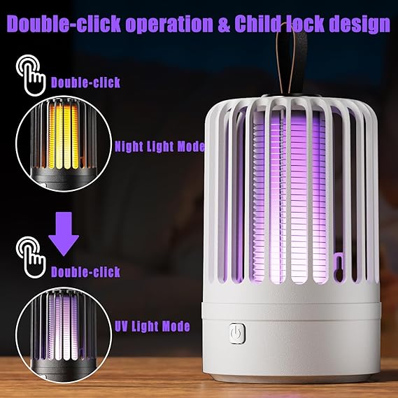 Long-lasting Power : This fly killer is equipped with a built in 1800mAh rechargeable battery. Charge it fully in 3- 4 hrs Type C and enjoy nights free of mosquitoes for 3 days or enjoy a soothing light for your afternoons. This is great for the home, camping, and even for your baby’s room.