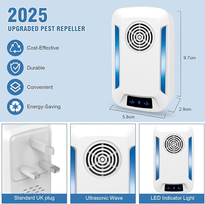 Harness cutting-edge technology with these ultrasonic pest repellers featuring frequency conversion, bionic sound, and wide-range ultrasonic waves. Designed to target pests’ nervous systems, they effectively repel mice, rats, mosquitoes, flies, cockroaches, ants, bedbugs, and more—without the use of harmful chemicals.