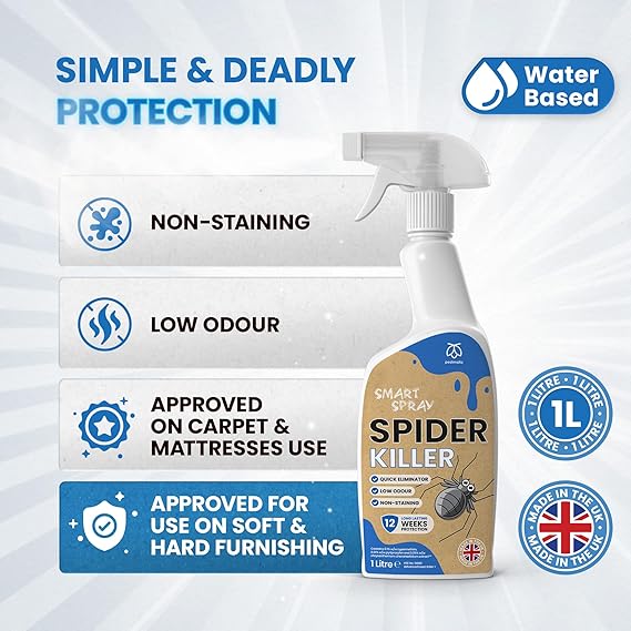 - NON-STAINING & ODOURLESS – Water-based and fabric-safe, this spider spray leaves no stains or lingering smells, making it perfect for everyday use around your home.