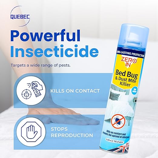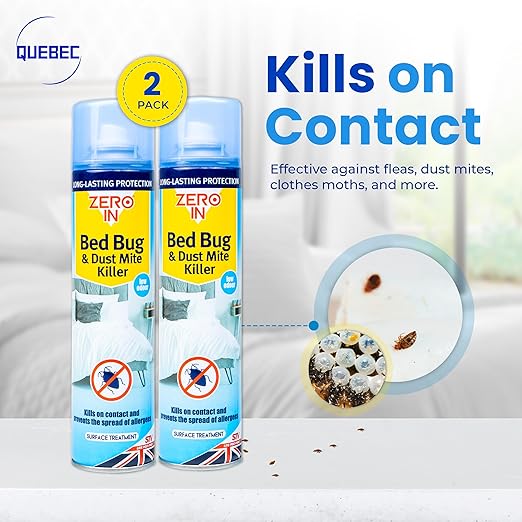 Instant Kill on Contact : Formulated with powerful active ingredients 1-R-Transphenothrin and Tetramethrin, this bug killer spray eliminates bed bugs at every life stage—adults, nymphs, and eggs—on contact. It also targets other common household pests including fleas, dust mites, clothes moths, carpet beetles, and more. Ideal as part of a comprehensive bed bug treatment plan.