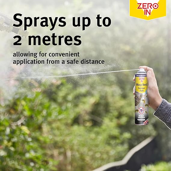 • POWERFUL WASP NEST CONTROL – Zero In Wasp Nest Killer Foam delivers fast and effective treatment for both indoor and outdoor nests. Each 300ml can provides enough coverage for 2–3 applications, helping eliminate wasp infestations quickly.